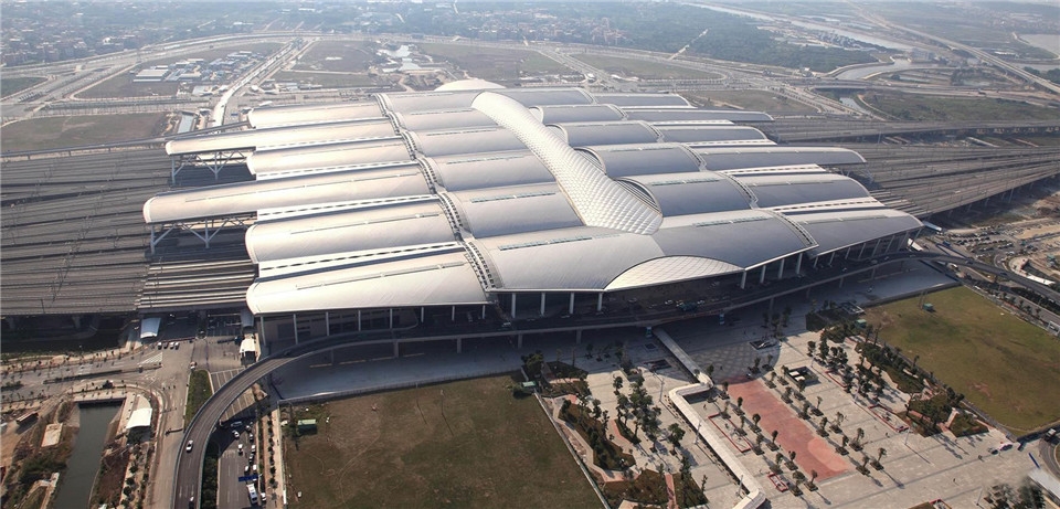 Opened in Jan 2010, Guangzhou South Railway Station (Chinese name Guangzhou Nan) is the four largest high-speed railway station in China that with over 610,000 square metres and has 15 platforms, 28 railway tracks. The Station is located in Panyu District, 17km south of the downtown of Guangzhou. As an interchange station and a terminus between Guangzhou-Shenzhen-Hong Kong high speed railway, Guangzhou-Zhanjiang high speed railway, Guangzhou–Zhuhai intercity railway and Beijing-Guangzhou high-speed Railways, Guangzhou South Railway Station is mainly serving high speed trains, operating 421 highs speed trains and on average has 430,000 entrances and exits per day.